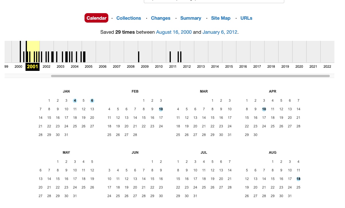 在webarchive中,仍有一些快照是无法访问的。无法正确显示的网页也会保存,需要校验信息。在calendar页面下方给出了提示。