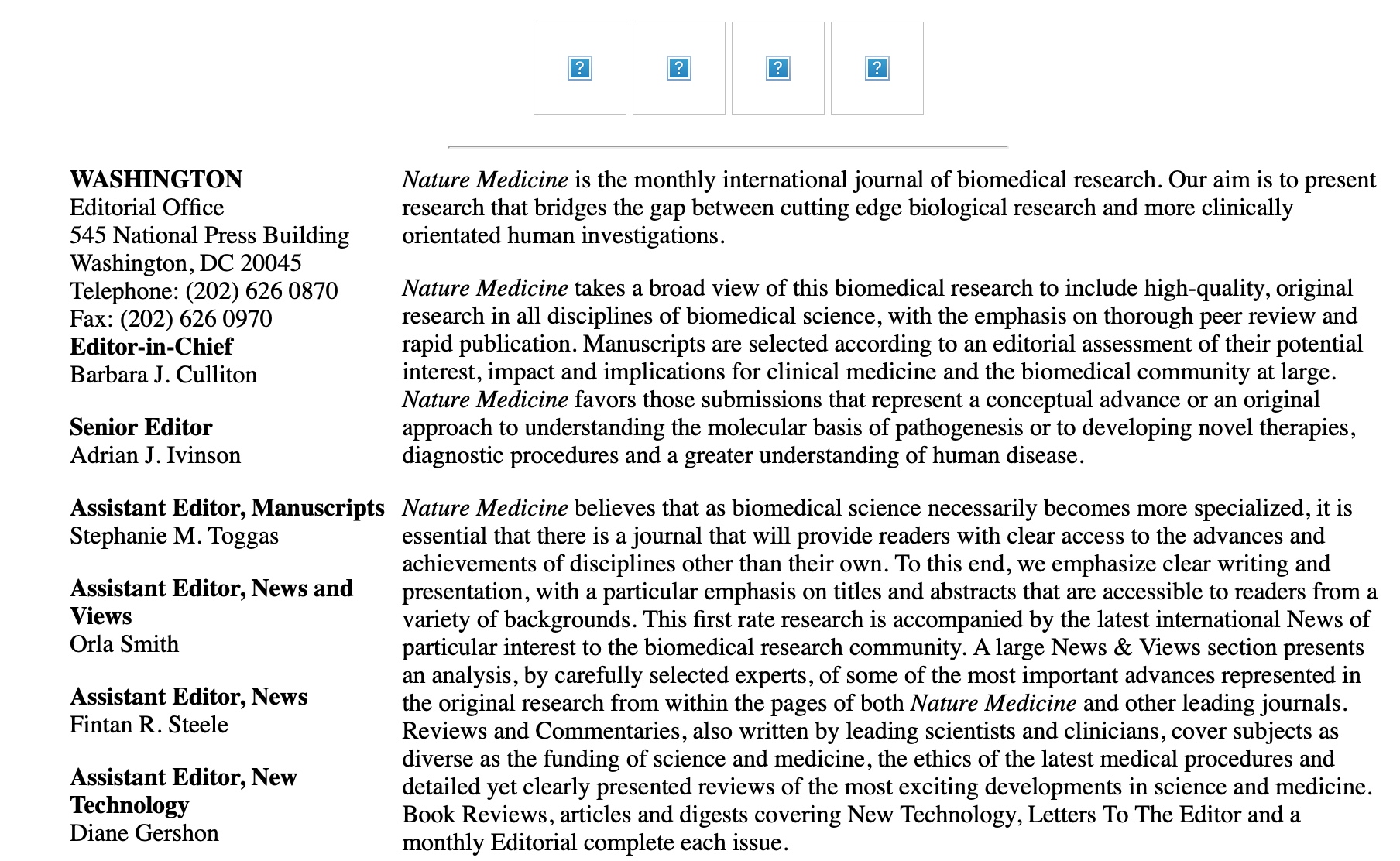 为了帮助你验证,这里是1996年nature medicine主编页-webarchive链接 ,可以直接点击。