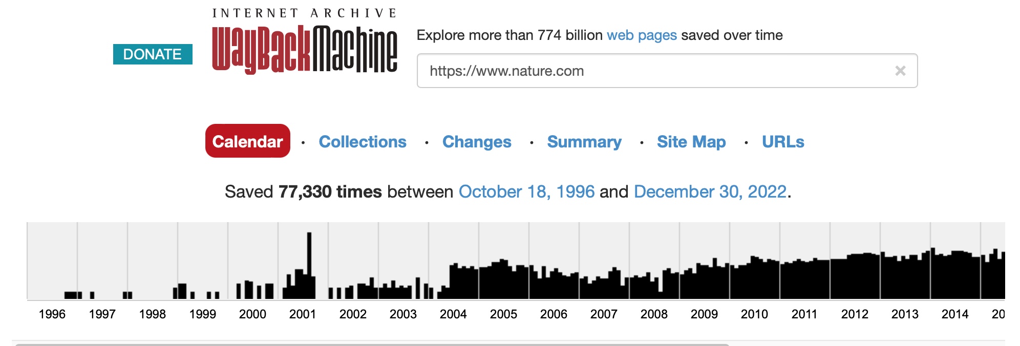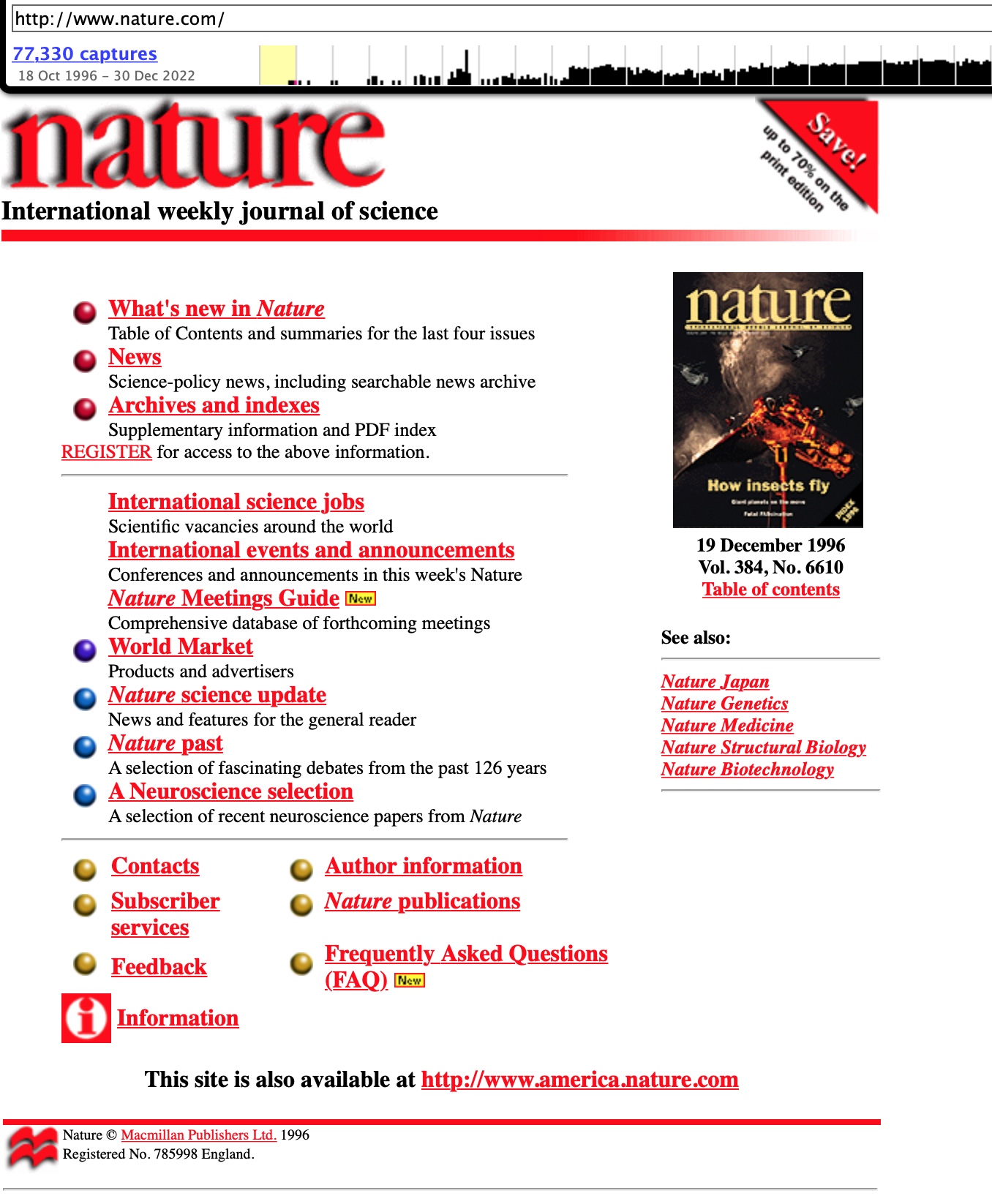 为什么只有这两年,过去这本期刊发表在哪儿?nature 的创刊日期是1995年,webarchive 开始保存快照的时间是1996年,中间的这些年为什么没保存?