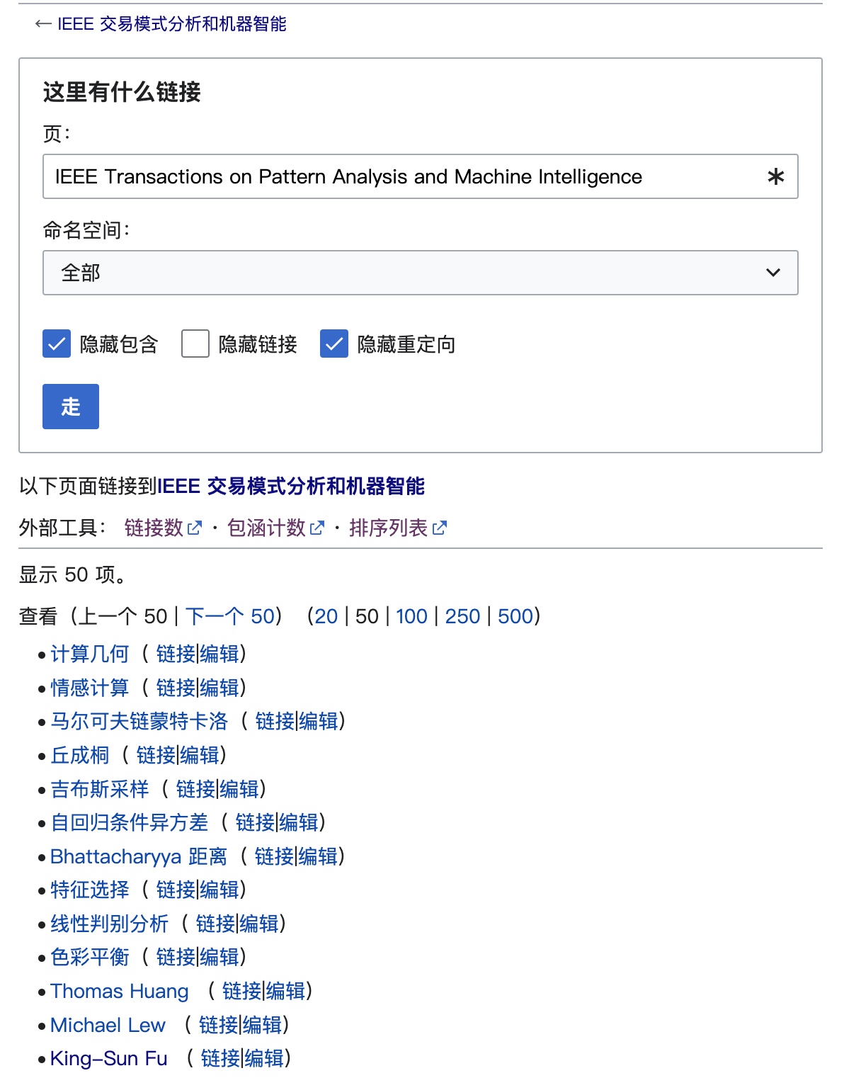 小思考:根据名字检索主编时,TPAMI是一个链接,但检索期刊页面时只有现任主编信息。。如何反向查询?