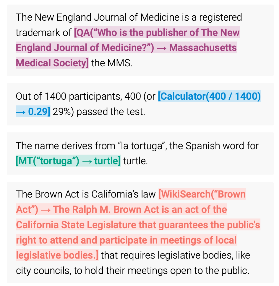 [24] Schick et al. “Toolformer: Language Models Can Teach Themselves to Use Tools." arXiv preprint arXiv:2302.04761 (2023).