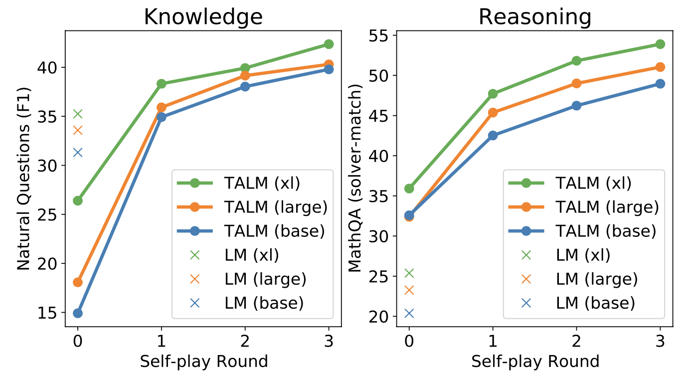 图 5. 自我对弈的迭代有助于提高模型的性能。(图片来源:Parisi et al. 2022 )