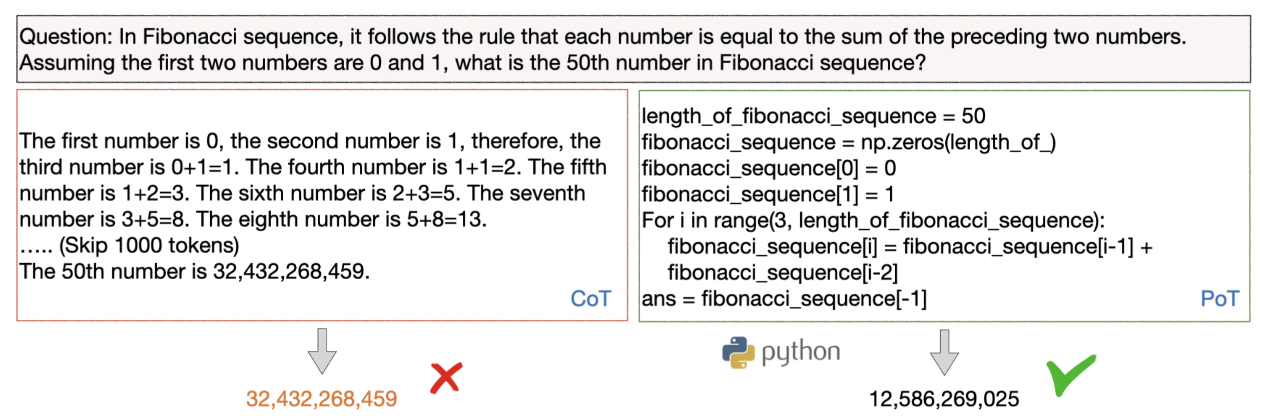 图3. 比较CoT和PoT。 (图片来源: Chen et al. 2022 )。